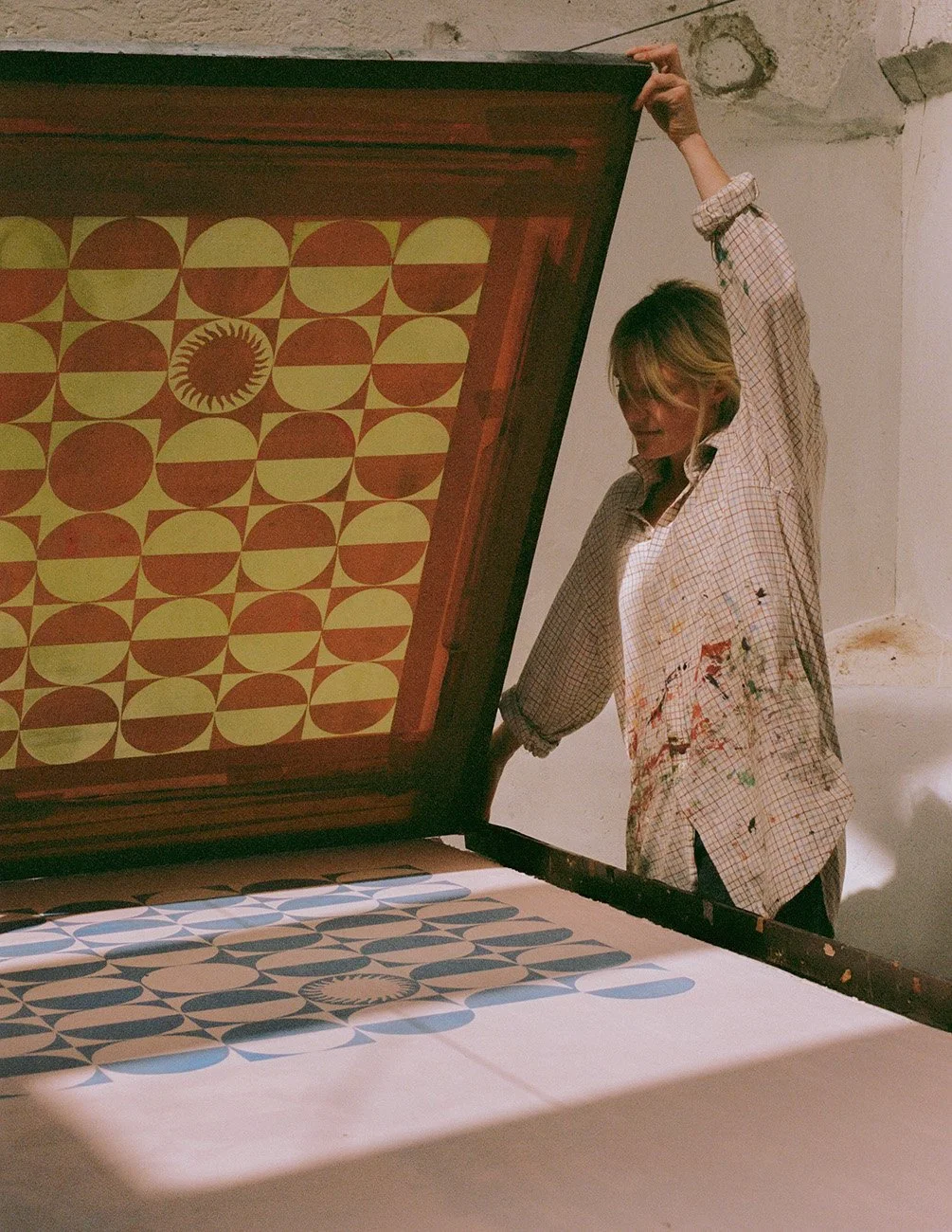 Interior textiles, curtains, linen cushions and lampshades, printed in Somerset hand-printed stonewashed linen, printed in a barn in Somerset. Creating sustainable textiles perfect for interiors. Colourful, bold and bright. bright